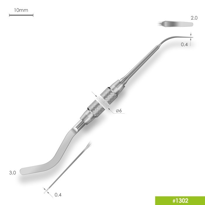 Большая двухстороння серповидная гладилка для работы на вестибулярных и язычных поверхностях фронтальной группы зубов.