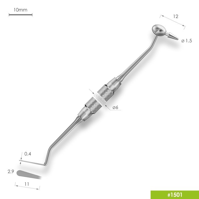 Штопфер-конденсатор-гладилка с геометрическими поверхностями для моделирования пломб. Также используется для конденсации композитной массы с целью равномерного распределения в полости зуба и заполнения пор.