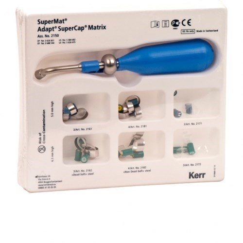 Описание: 2150 Super Mat набор KerrНабор ассорти SuperMat Assorted Kit – инструмент для натяжения SuperLock, 14 матриц Adapt SuperCap из стали в ассортименте, 6 матриц Adapt SuperCap из прозрачной пластмассы в ассортименте
