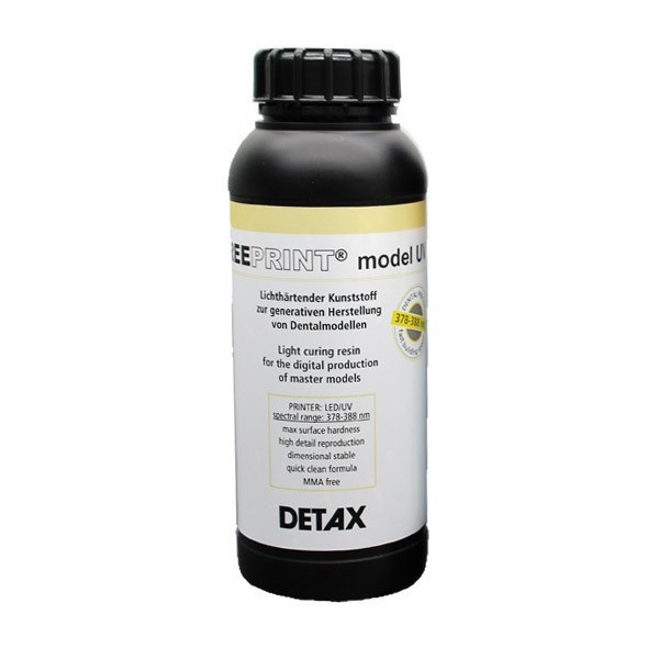 Материал для 3D принтеров DETAX Freeprint model UV - светоотверждаемый полимер для генеративного изготовления дентальных моделей. Для всех светодиодных/ультрафиолетовых принтеров со спектром световой волны 378-388 нм.