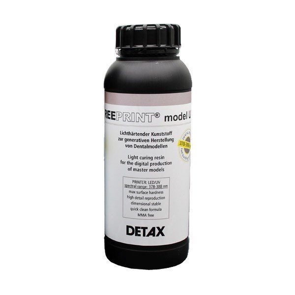 Материал для 3D принтеров DETAX Freeprint model UV - светоотверждаемый полимер для генеративного изготовления дентальных моделей. Для всех светодиодных/ультрафиолетовых принтеров со спектром световой волны 378-388 нм.