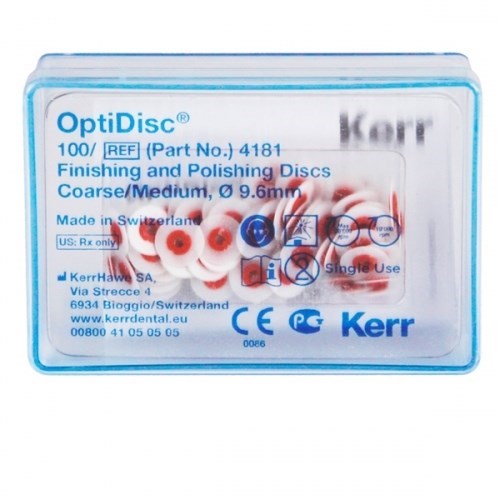 Система OptiDiscтм от Kerr представляет собой превосходную комбинацию дисков с абразивными частицами различного размера для контурирования, финирования и полировки до зеркального блеска композитов, стекло-иономеров, амальгам, полудрагоценных и драгоценных металлов.