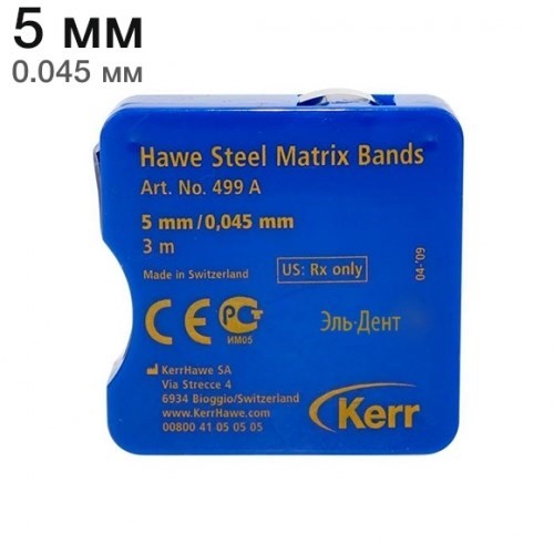 Описание: 499А (5мм|0,045) Матрицы металлическая в рулетке 3м Kerr HaweHawe Steel Matrix Band – это стальная матричная лента в диспенсере.