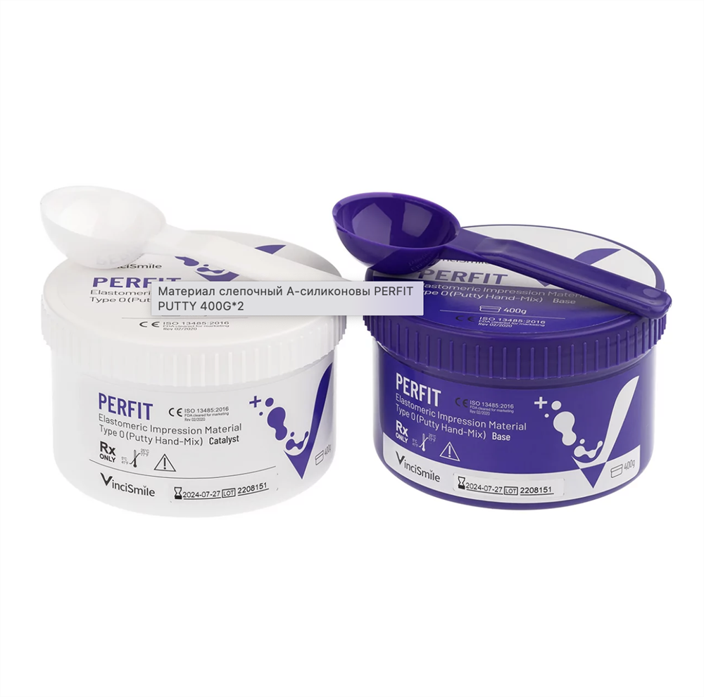 Perfit Putty (Перфит Патти) - это стоматологический А-силикон. Масса для ручного смешивания. Перфит Патти обладает высокой прочностью на разрыв и растяжение. Имеет превосходное упругое восстановление (более 99,5%). Высокая твердость после застывания позволяет использовать его для изготовления базовых оттисков. Применение с корригирующими материалами, в любой технике снятия оттисков, обеспечивает точность воспроизведения деталей. Благодаря отсутствию вкуса и запаха, а также гипоаллергенным свойствам, масса хорошо переносится большинством пациентов. Совместимость с А-силиконами других производителей обеспечивает удобство работы. По способу применения масса Perfit Putty аналогична Express STD Putty (3M ESPE), Silagum Putty (DMG), Bisico S1 Putty / Suhy (BISICO).