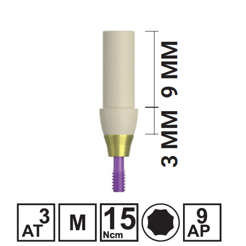 Эстетический абатмент сделан из PMMA с титановым соединением и титановым винтом. Обработку абатмента следует осуществлять с осторожностью, чтобы не допустить откола эстетического покрытия. Временные абатменты не должны находиться в полости рта более 28 дней. Торк фиксации - 15 Ncm.