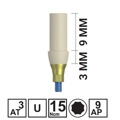 Эстетический абатмент сделан из PMMA с титановым соединением и титановым винтом. Обработку абатмента следует осуществлять с осторожностью, чтобы не допустить откола эстетического покрытия. Временные абатменты не должны находиться в полости рта более 28 дней. Торк фиксации - 15 Ncm.