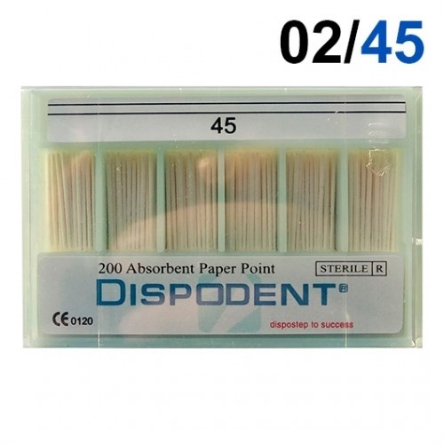 Описание: Абсорберы 02 №45 (200шт), DispodentШтифты эндоканальные абсорбирующие бумажные предназначены для высушивания корневого канала.