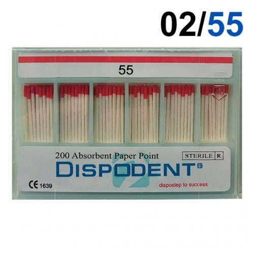 Описание: Абсорберы 02 №55 (200шт), DispodentШтифты эндоканальные абсорбирующие бумажные предназначены для высушивания корневого канала.