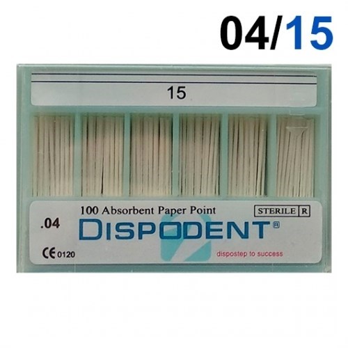 Описание: Абсорберы конусные 04 №15 (100шт), DispodentШтифты эндоканальные абсорбирующие бумажные предназначены для высушивания корневого канала.