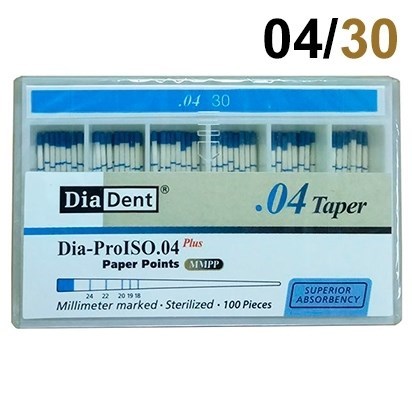 Описание: Абсорберы конусные 04 №30 (100шт.), DiaDentАбсорберы DiaDent Конусность: 04. Номер (ISO): №30. (Absorbent Paper Points)