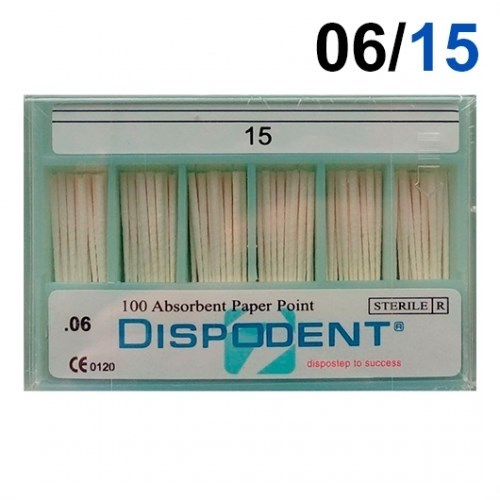 Описание: Абсорберы конусные 06 №15 (100шт), DispodentШтифты эндоканальные абсорбирующие бумажные предназначены для высушивания корневого канала.