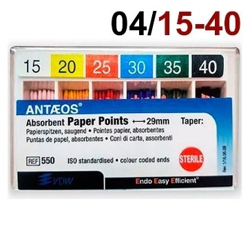 Описание: Абсорберы VDW 04.№15-40 Эндоканальные бумажные штифты. Бумажные штифты конусностью 04 - высокоабсорбирующий материал, который полностью безопасен в применении.