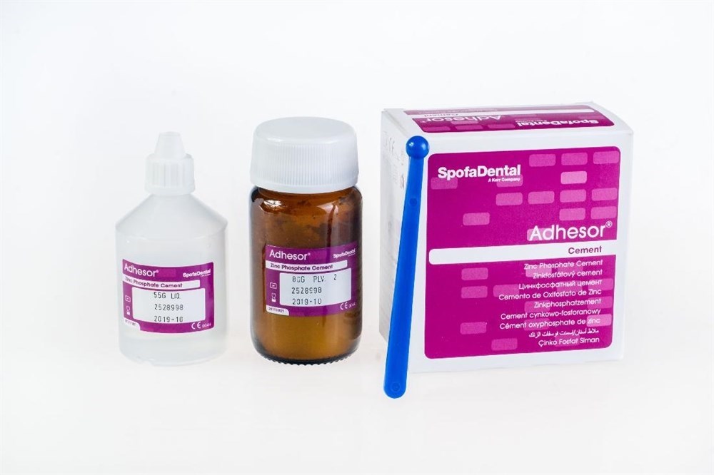 Адгезор Оригинал №1. Пломбировочный материал. Двухкомпонентный цинкфосфатный цемент в виде порошка и жидкости химического отверждения. Применяется как подкладочный материал под амальгамные и композитные пломбы, материал для временных пломб, для фиксация коронок и небольших мостовидных протезов, заполнение корневых каналов. Упаковка порошок 80 г. Жидкость 55 мл. Цвет № 1 - белый Срок годности 5 лет.