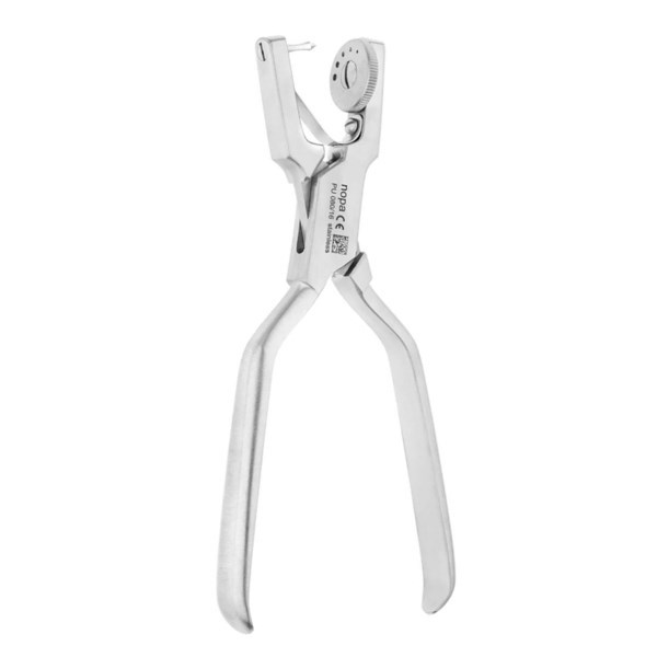 Пробойщик для коффердама используют для создания отверстия в самом коффердаме. На поворотной части расположен диск с 5-ю разными диаметрами: