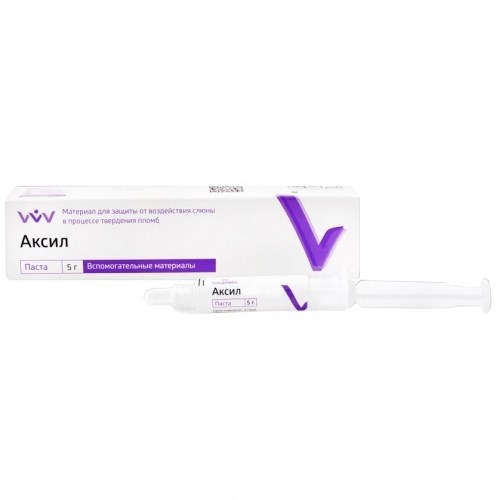 Описание: Аксил - лак для изоляции пломб и защиты десны, ВладМиВаЗащитная паста «Аксил» содержит гидрофобный биосовместимый компонент, обладает водоотталкивающими свойствами и не раздражает слизистую полости рта.
