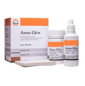Аква-Цем. Золотисто-желтый цинкфосфатный цемент для фиксации вкладок, штифтов, одиночных коронок и мостовидных протезов (100 г + 60 г).