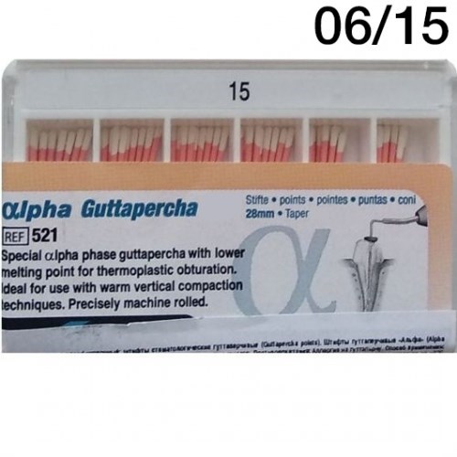 Описание: Альфа Гуттаперча № 06/15 VDWГуттаперчевые альфа штифты, используются для постоянного пломбирования корневых каналов методом термопластической обтурации, имеют низкую температуру плавления, сделаны из гомогенной, биосовместимой, натуральной гуттаперчи, обладают высокой стабильностью и гладкой поверхностью для легкого введения в канал, практичная слайдкассета с поролоновой вставкой, предотвращает выпадение штифтов.
