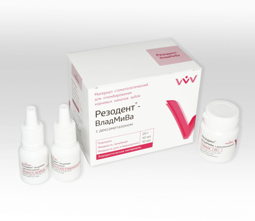 АО ОЭЗ" ВладМива" Резодент для пломбирования каналов (порошок 20 г+ жидкости 2 х 10 мл) (ВладМиВа)