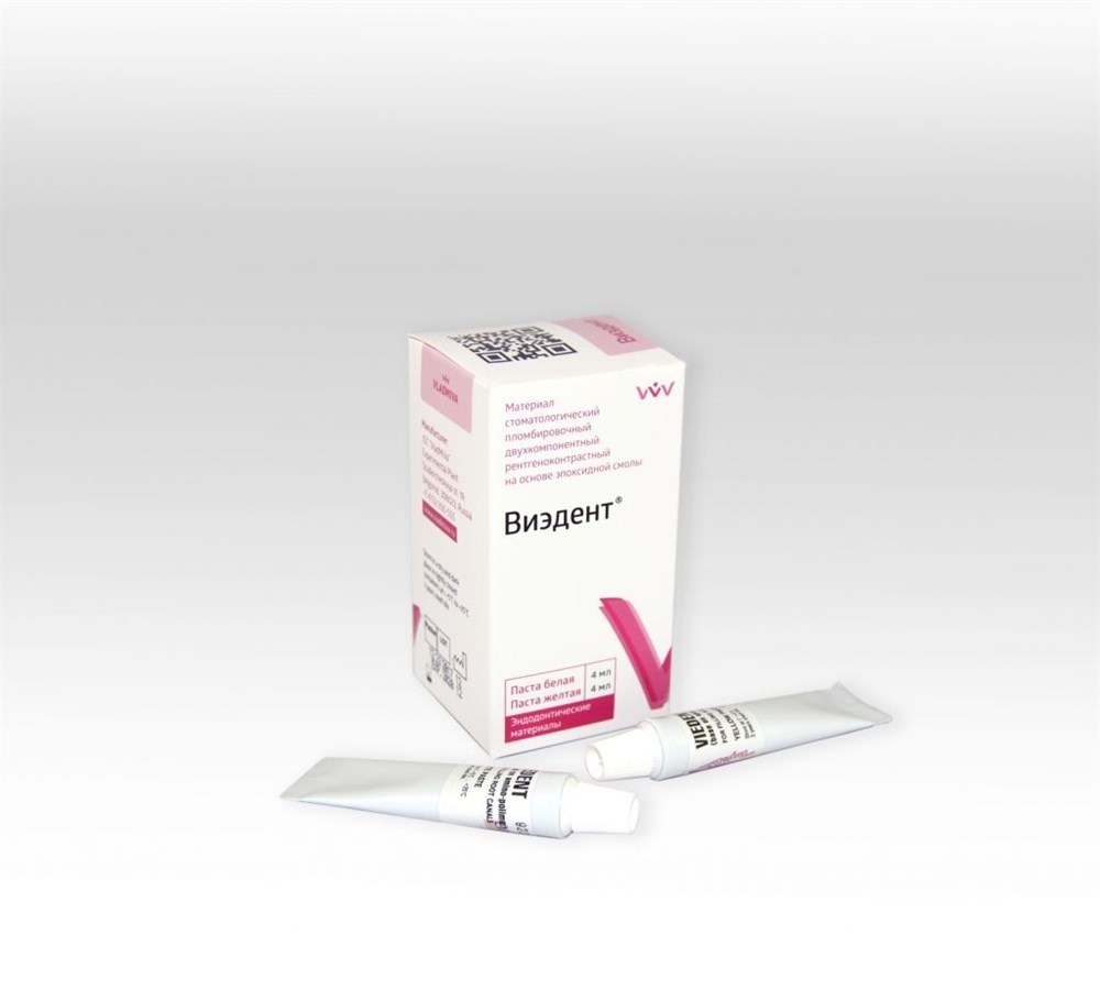 АО ОЭЗ" ВладМива" Виэдент пломбировочный материал на основе эпоксидного аминополимера (паста 4 мл + паста 4 мл).