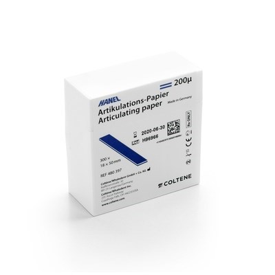 Hanel артикуляционная бумага, покрытая с обеих сторон краской, используемая в гнатологии. Обладает высоким маркирующим эффектом. При использовании на моделях может использоваться многократно, так как красящее покрытие обладает способностью к регенерации.