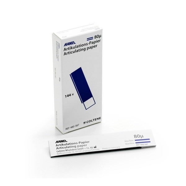 Hanel артикуляционная бумага I-, C- и U-образной формы, покрытая с обеих сторон краской, используемая в гнатологии. Обладает высоким маркирующим эффектом. При использовании на моделях может использоваться многократно, так как красящее покрытие обладает способностью к регенерации.