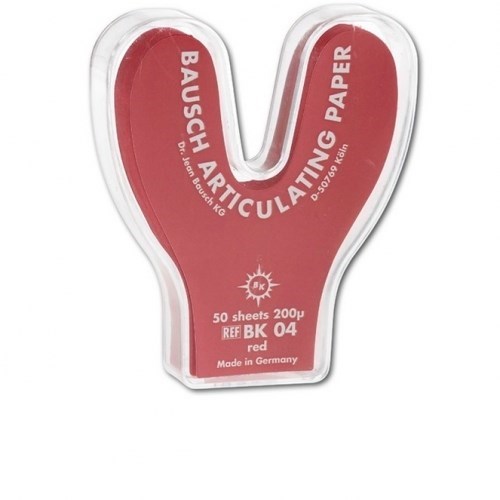 Описание: Артикуляционная бумага Bausch BK 04, 200 мкрн - копирка бауш подкова, 50л, краснаяВК 04 - артикуляционная бумага Бауш дугообразная толщиной 200 мкм с нарастающей интенсивностью цвета.