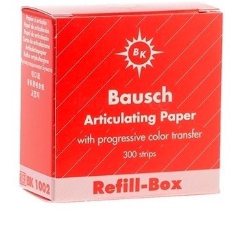 Артикуляционная бумага Bausch ВК 1002 - красная, толщиной 200мкм, 300 листов, в пластиковой кассете.