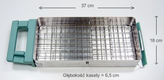 Внутренние размеры кассеты : Д 380 мм x Ш 180 мм x В 80 мм, объём кассеты 5л, вместительность резервуара: 4 л. В.