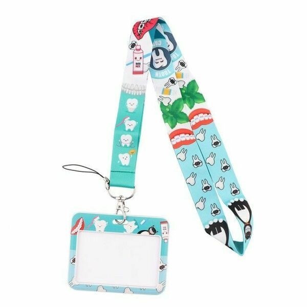 Бейдж с лентой для пропуска или карточки с именем врача не только функциональный аксессуар, но и яркий элемент одежды, который может отвлечь маленького пациента, облегчив работу детского стоматолога. Бейдж расположен горизонтально.