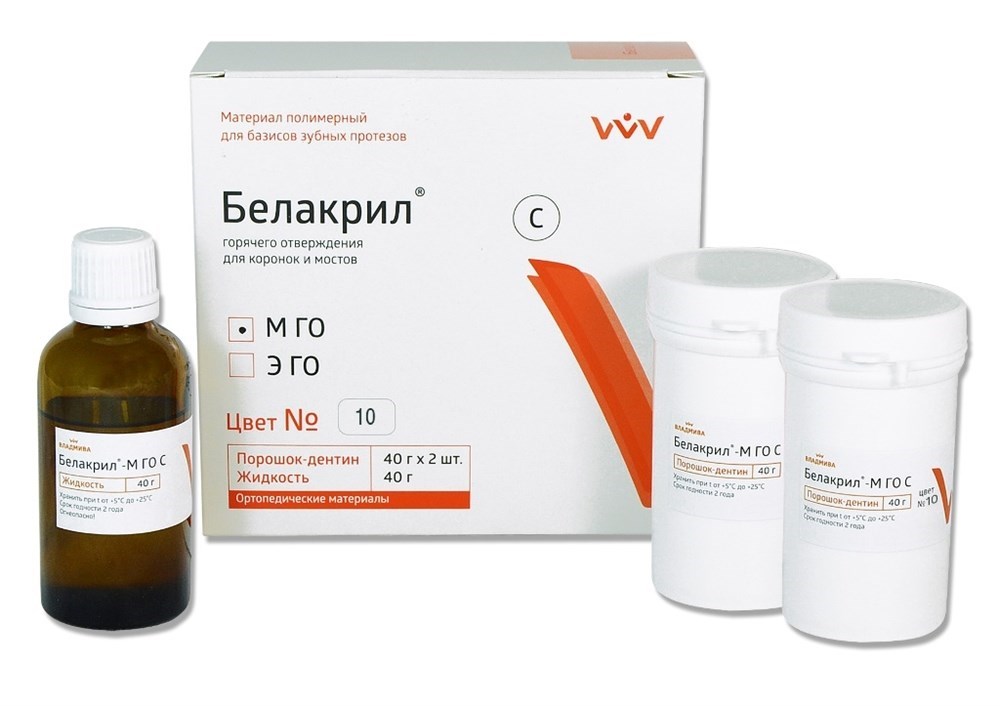 Белакрил–М/ГО/ С/№10 полимерный материал для базисов зубных протезов/Порошок 40 г х 2 + жидкость 40 мл