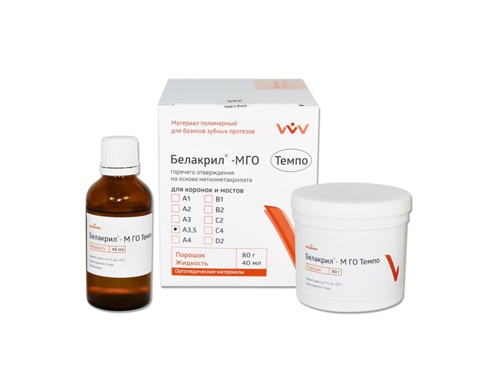 Белакрил–М/ГО ТЕМПО А3,5 набор порошок 80 г+ жидкость 40 мл, пластмасса для несъёмного протезирования.