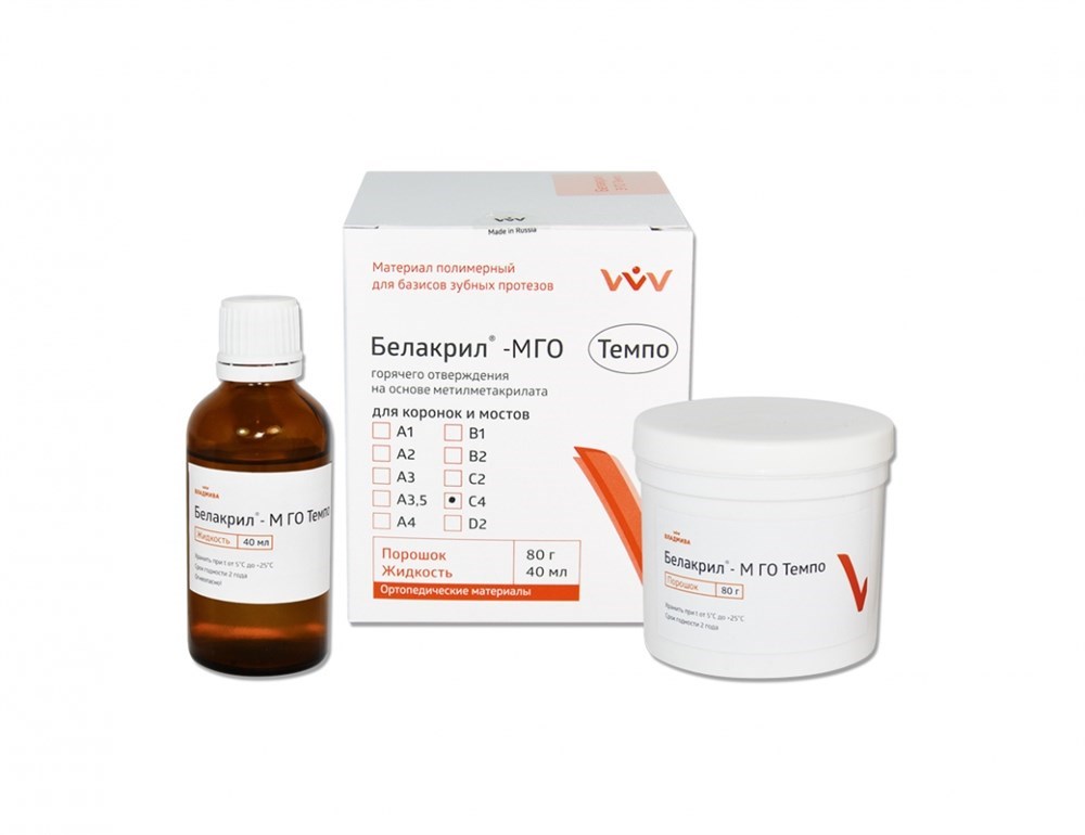 Белакрил–М/ГО ТЕМПО C4 набор порошок 80 г+ жидкость 40 мл, пластмасса для несъёмного протезирования.