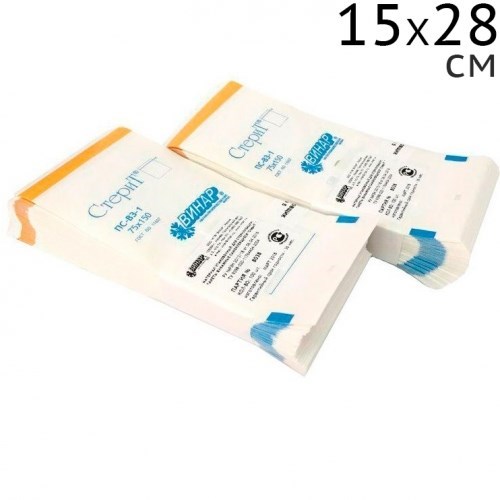 Белые крафт-пакеты Стерит 15х28см (влагопрочные) 100шт.