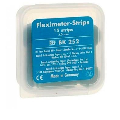 Описание: BK 252 полоски-шаблоны гибкие 1.0мм 15шт, синие BauschВесьма практичной инновацией в работе как зубного врача, так и зубного техника являются гибкие измерительные (флексиметрические)полоски (Fleximeter-Strips). Эти гибкие измерительные полоски представляют собой достаточно эластичные ленточки трех различных толщин для измерения уровня подготовленности при шлифовке зубов и зубных протезов или их реставрации (например, с помощью коронок, мостовых протезов или двойных коронок). Различная толщина гибких измерительных полосок составляет 1,0 мм, 1,5 мм и 2,0 мм и потому они могут также использоваться для определения и измерения вертикальных зазоров (при прикусе). Материалом полосок является специальный силикон, который можно стерилизовать при температуре до 200°C.