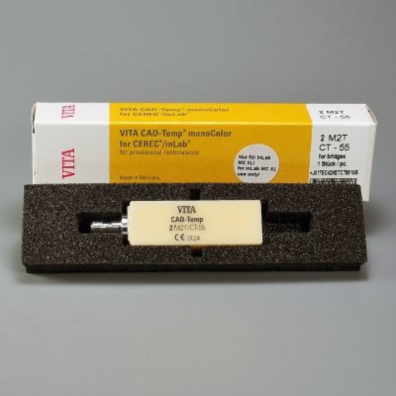 Блоки VITA CAD-Temp monoColor for CEREC/inLab, 2M2T, CT-55, 1 шт. (15.5х19х55 мм) - акрилатный полимер с керамическим микронаполнителем для экономичного изготовления временных реставраций длительного ношения.