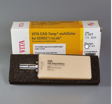 Блоки VITA CAD-Temp multiColor for CEREC/inLab, 3M2T, CTM-85/40, 1 шт. (18х40х85 мм) - акрилатный полимер с керамическим микронаполнителем для экономичного изготовления временных реставраций длительного ношения.