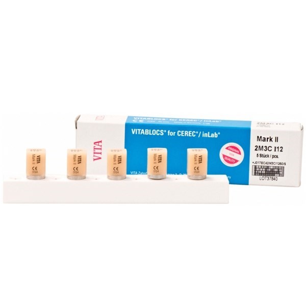 Монохромные, соответствующие цвету блоки VITABLOCS Mark II изготовлены из мелкодисперсной керамики из полевого шпата и идеально интегрируются в остаточную субстанцию зуба. Они служат для изготовления вкладок, накладок, полукоронок, фронтальных и боковых коронок, а также виниров в установках CEREC и inLab CAD/CAM System от фирмы Sirona Dental Systems.