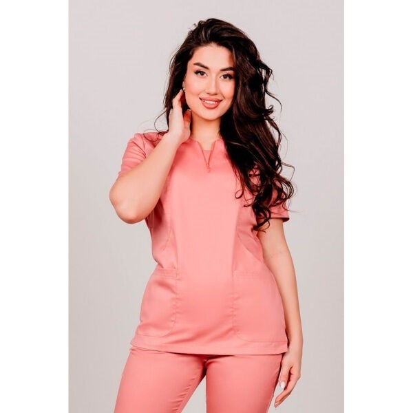 Женская медицинская блуза ADVA выполнена длиной ниже линии бедер и имеет интересную фигурную линию выреза, дополненную декоративной молнией. Также присутствуют два накладных кармана, у которых закруглены углы и два внутренних кармана.