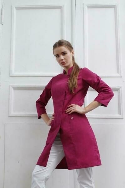 Женская медицинская блуза "Восток" имеет удобный полуприлегающий силуэт, рукав длиной 3/4, воротник-стойку и идеальную посадку. Модель дополнена двумя вместительными карманами по бокам. Асимметричная застежка на пуговицы и четыре верхние кнопки позволяет удобно надевать и снимать блузу.