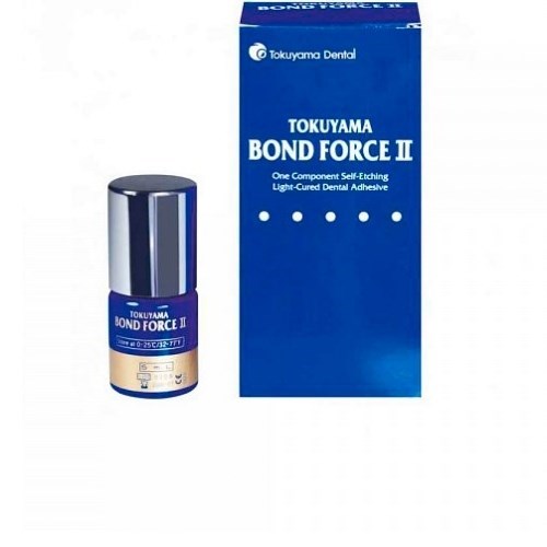 ПРОТИВОПОКАЗАНИЯ TOKUYAMA BOND FORCE II содержит метакриловые мономеры, органические растворители и кислоты. НЕ СЛЕДУЕТ использовать TOKUYAMA BOND FORCE II у пациентов, страдающих аллергией или повышенной чувствительностью на метакриловые и схожие с ними мономеры, органические растворители и кислоты. Преимущества Короткое время нанесения - 10 секунд Хранение при комнатной температуре до 2 лет (0-25С) Быстрое высушивание умеренной воздушной струей - 5 секунд Не теряет своих свойств при нахождении на палетке в течение 5 минут (если используется светозащитная крышка) Прочность адгезии после двух лет наблюдений составила 38,8+/- 13,9 МРа (Согласно исследованиям Университета Северной Каролины, 2010 AАDR) Одна бутылочка - одно нанесение. Протравливание, праймер и бонд в одном флаконе. Эффективность при нанесении одним слоем. Превосходная адгезия к препарированной и не препарированной эмали, к дентину, к цементу корня. Равномерное нанесение. Отличная адаптация в полости. Материал обладает оптимальной консистенцией. Универсальный. Совместим со всеми светоотверждаемыми композитами. Многофункциональный. Подходит для постоянных и временных зубов. Удобная экономичная упаковка. Один флакон содержит 300 доз препарата по 15,0мг. Не содержит ацетон. В качестве растворителя используется изопропиловый спирт. Отсутствие постоперационной чувствительности. Препарат превосходно проникает в дентинные канальцы. Очень быстрая работа. Выполнение адгезивного протокола за 25 секунд! Длительное рабочее время. На палетте для смешивания материал сохраняет свои свойства в течение пяти минут. Нет необходимости хранить в холодильнике. Работать стало легче - 3 быстрых шага! Однократно внести Tokuyama Bond Force II и втереть 10 секунд. Раздуть умеренной струей воздуха 5 секунд. Полимеризовать 10 секунд. Комплектация Адгезив во флаконе Bottle (5 мл) 1 шт.