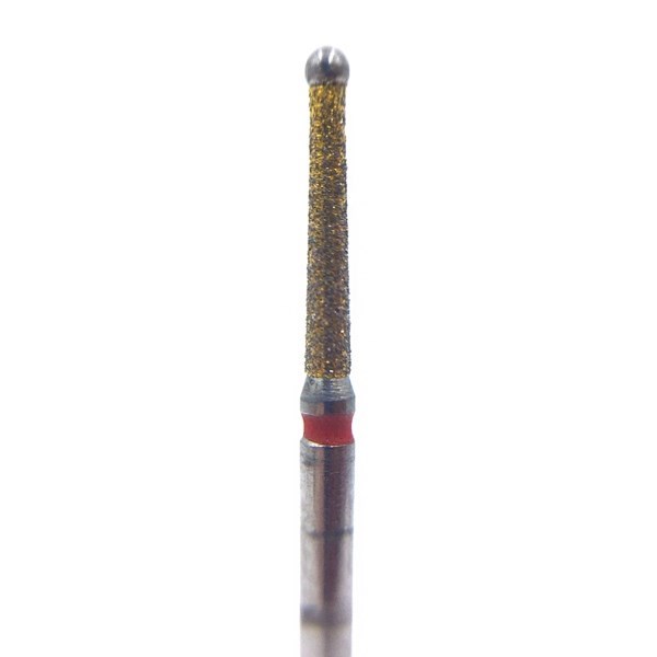Бор алмазный 388Q, GOLD Line, шаровидный с воротником, безопасный конец, D=1,4 мм, красный