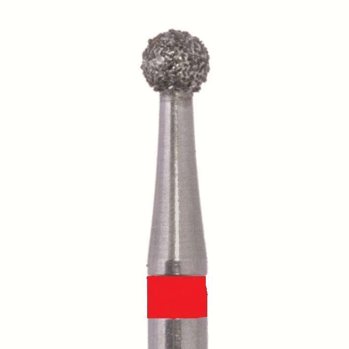 Бор алмазный для турбинного наконечника. Общая длина 19 мм, диаметр рабочей части 1мм. Зернистость тонкая 27-76 мкм, цветовая кодировка красная. В упаковке 5 шт. Форма: шар. Артикул 801F.314.010.