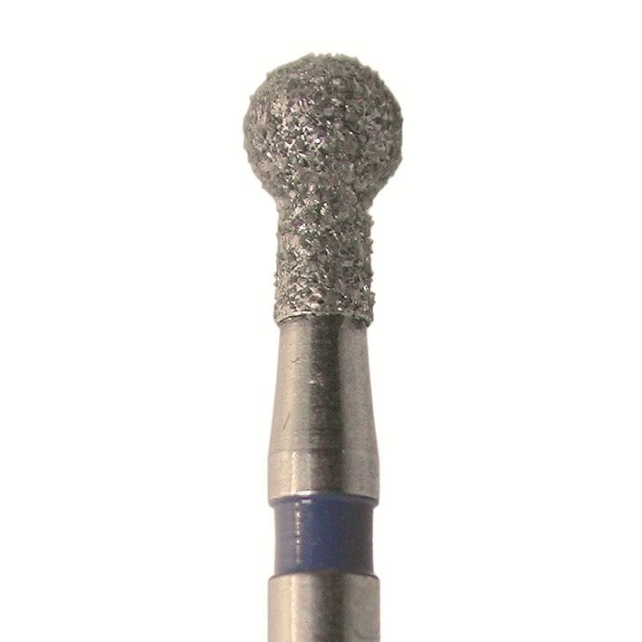 Бор алмазный для турбинного наконечника. Общая длина 19 мм, диаметр рабочей части 1,4 мм. Зернистость средняя 64-126 мкм, цветовая кодировка синяя. В упаковке 5 шт. Форма: шар с "воротничком". Артикул 802.314.014.
