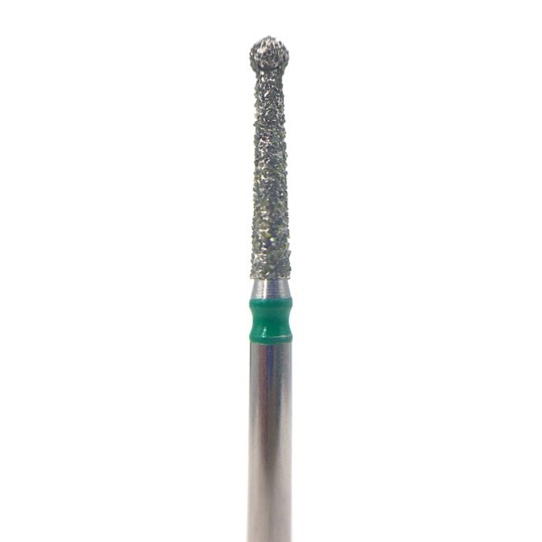 Бор алмазный 802LG FG, шаровидный с воротником (удлиненный), D=1,4 мм, зеленый