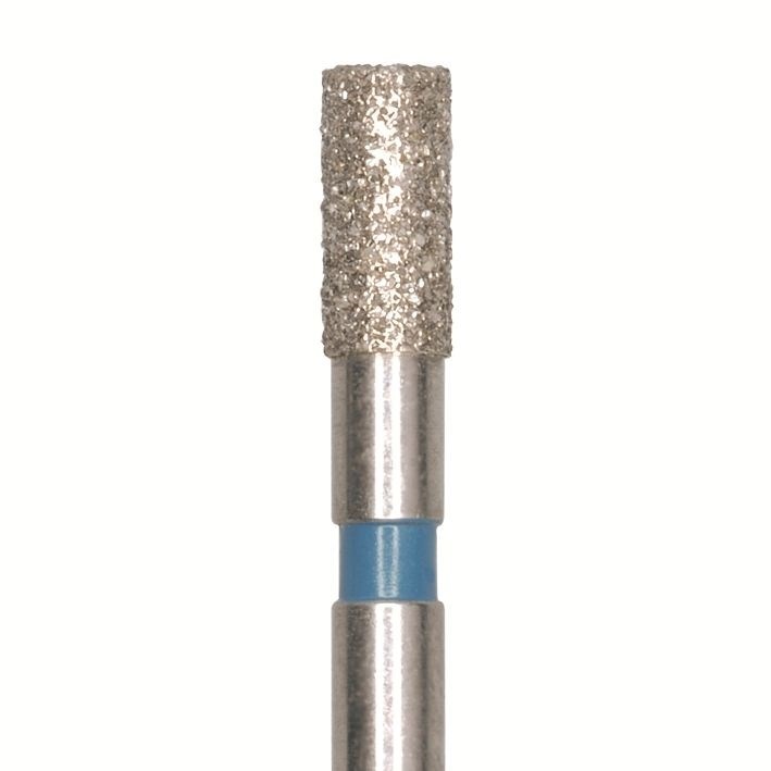 Бор алмазный для турбинного наконечника. Общая длина 19 мм, диаметр рабочей части 1,8 мм. Зернистость средняя 64-126 мкм, цветовая кодировка синяя. В упаковке 5 шт. Форма: цилиндр с плоским концом.