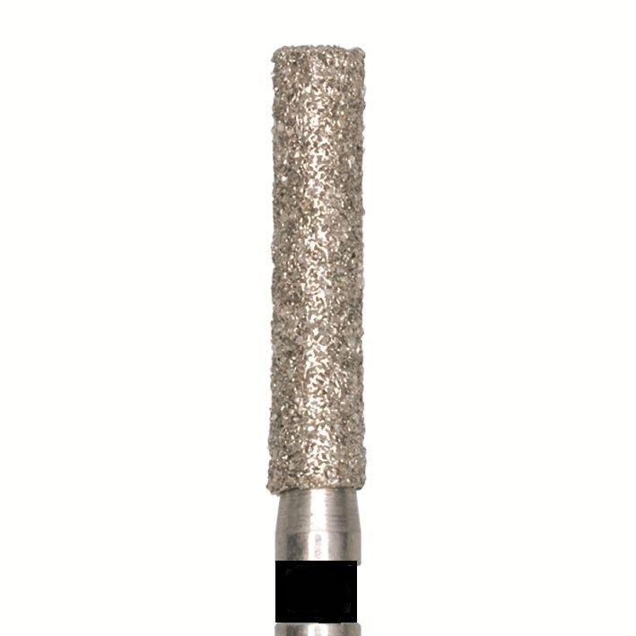 Бор алмазный для турбинного наконечника. Общая длина 19 мм, диаметр рабочей части 1,4 мм. Зернистость сверхгрубая 151-213 мкм, цветовая кодировка черная. В упаковке 5 шт. Форма: цилиндр с плоским концом. Артикул 837LSG.FG.012.