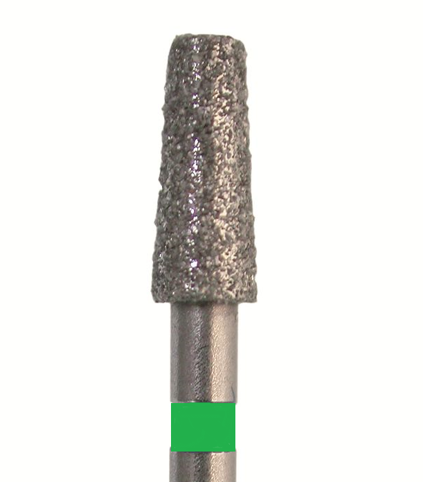 Бор алмазный для турбинного наконечника. Общая длина 19 мм, диаметр рабочей части 1,2 мм. Зернистость грубая 107-181 мкм, цветовая кодировка зеленая. В упаковке 5 шт. Форма: конус с плоским концом. Артикул 846G.FG.012.