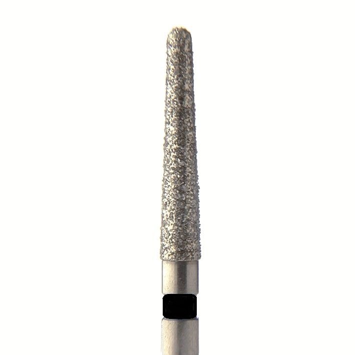 Бор алмазный для турбинного наконечника. Общая длина 19 мм, диаметр рабочей части 1,2 мм. Зернистость сверхгрубая 151-213 мкм, цветовая кодировка черная. В упаковке 5 шт. Форма: конус с закругленным концом. Артикул 852SG.314.012.