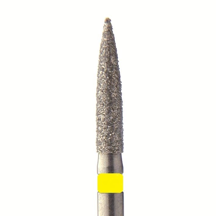 Бор алмазный для турбинного наконечника. Общая длина 19 мм, диаметр рабочей части 1,0 мм. Зернистость сверхтонкая 10-36 мкм, цветовая кодировка желтая. В упаковке 5 шт. Форма: цилиндр с заостренным концом. Артикул 862EF.FG.010.