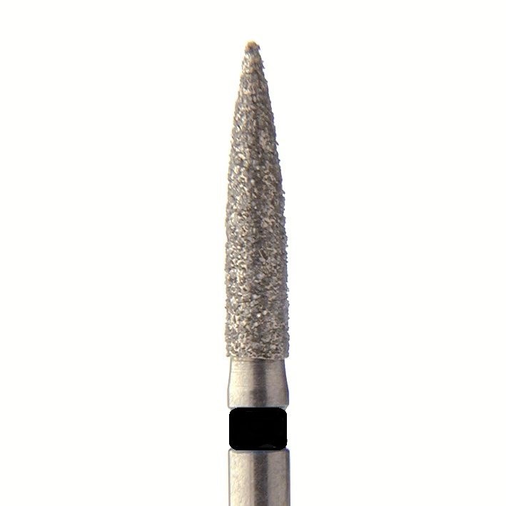 Бор алмазный для турбинного наконечника. Общая длина 19 мм, диаметр рабочей части 1,4 мм. Зернистость средняя 64-126 мкм, цветовая кодировка черная. В упаковке 5 шт. Форма: цилиндр с заостренным концом.
